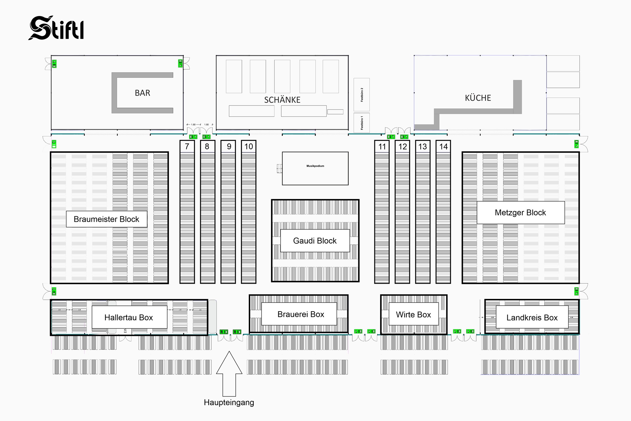 Bei Ihrer Tischreservierung können Sie den gewünschten Bereich auswählen (z. B. Braumeister Block, Wirte Box usw.). Ihre genaue Tischnummer wird von uns vergeben und ist vor Ort am Tischplan beim Haupteingang einsehbar.